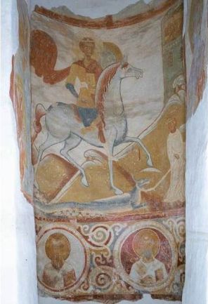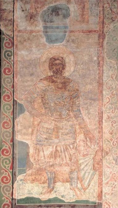 171. Неизвестный св. воин. Фреска Кирилловской церкви в Киеве. Последняя четверть XII в.