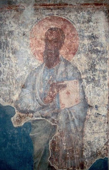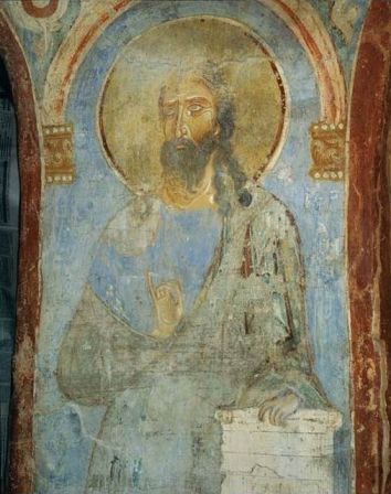 160. Евангелист Иоанн. Фреска Спасо-Преображенского собора Спасо-Евфросиниева монастыря в Полоцке. Вторая половина XII вв.