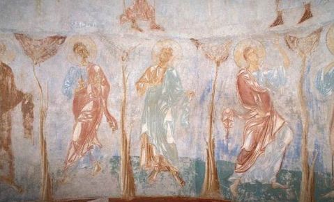 178. Апостолы и ангелы из «Страшного Суда». Фреска Дмитриевского собора Владимира. Около 1195 г.