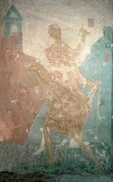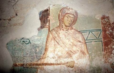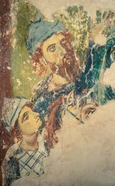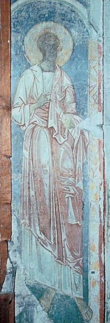 96. Неизвестный диакон. Фреска арки диаконника собора Рождества Богородицы Антониева монастыря в Новгороде. 1125 г.