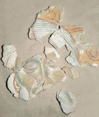 Рубеж 20–30-х гг. XII в. становится для новгородского искусства периодом кристаллизации местных вкусов. Вероятно, к этому моменту уже существовало несколько местных художественных артелей, действовавших, скорее всего, при владычном или княжеском дворах, а также при крупных монастырях. Об этом свидетельствуют фрески Георгиевского собора Юрьева монастыря, который был заложен в 1119 г. князем Мстиславом Великим и расписан около 1130 г. уже при его сыне и преемнике Всеволоде Мстиславиче. Основной объем собора был украшен фресками, стилистически сильно напоминающими декорацию собора Антониева монастыря. Наиболее вероятными исполнителями этих росписей являлась группа фрескистов, которая могла сформироваться на основе артелей, работавших как в Антониевом монастыре, так и в других более ранних соборах Новгорода. К сожалению, эта роспись практически полностью погибла при ремонте 1830-х гг. и известна в настоящее время лишь по фрагментам орнаментов в окнах собора и археологическим находкам (илл. 97). При этом северо-западная башня собора, ведущая на хоры и в купол северо-западной главы, практически полностью сохранила свою фресковую декорацию, которая представляет собой самостоятельное художественное явление, принципиально отличающееся от декорации основного объема.