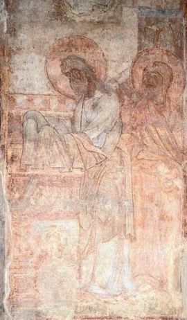 87. Фрагмент сцены «Иов на гноище». Фреска нартекса Николо-Дворищенского собора в Новгороде. Около 1120 г.