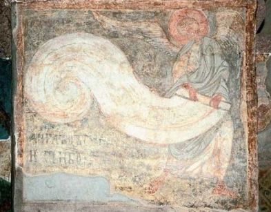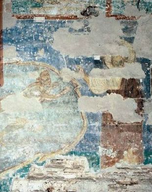 170. Ангел, свивающий небо. Фреска Кирилловской церкви в Киеве. Последняя четверть XII в.