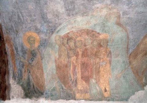 169. Лоно Авраамово. Фреска Кирилловной церкви в Киеве. Последняя четверть XII в.