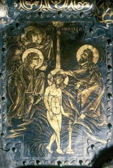 187. Крещение. Клеймо западных врат собора Рождества Богородицы в Суздале. Конец XII в.