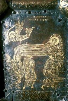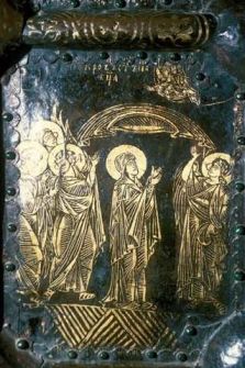 188. Несение одра Богоматери. Клеймо западных врат собора Рождества Богородицы в Суздале. Конец XII в.