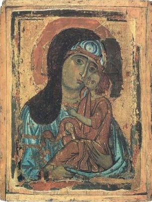 От последней трети XI в. до нас не дошло ни одной иконы из киевских храмов или дворцов, почти дотла разоренных татарами и последующими иноземными властителями. Лишь «Богоматерь Владимирская» (ГТГ), константинопольская икона, доставленная в Киев около 1131 г. и, к счастью для ее будущей сохранности, в 1155 г. увезенная оттуда Андреем Боголюбским во Владимир, дает представление о вкусах Киева в сфере иконописи. Ее утонченная эмоциональность и поэтическая созерцательность, развивая линию, начавшуюся ансамблем стенописей Михайловского Златоверхого монастыря, оказали, в свою очередь, большое воздействие на русскую иконопись, которая воспроизводила и варьировала интонации этого образа даже в XV в.