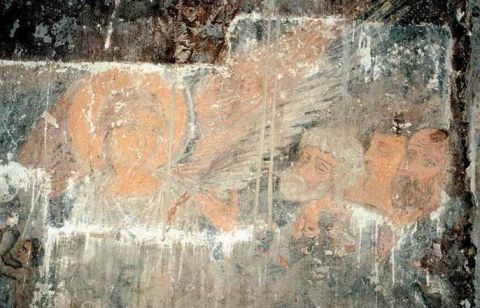 159. Ангел из Вознесения. Фреска Спасо-Преображенского собора Спасо-Евфросиниева монастыря в Полоцке. Вторая половина XII в.
