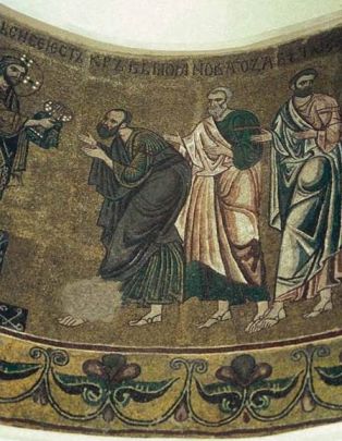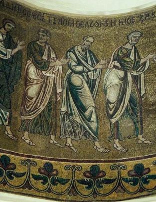 65. Апостолы из Евхаристии. Мозаика Михайловского Златоверхого собора в Киеве. Около 1112 г.