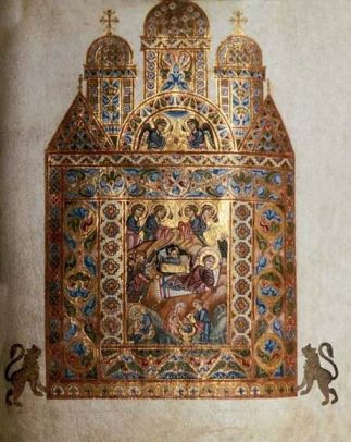 77. Рождество Христово. Миниатюра Молитвенника Гертруды. 1078–1086 гг. Чивидале, Национальный археологический музей, cod. CXXXVI