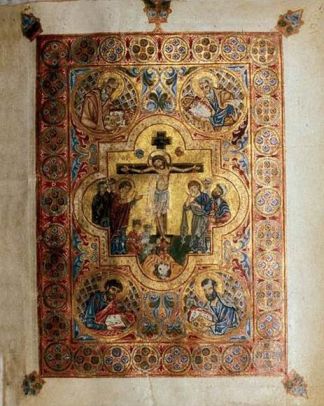 78. Распятие. Миниатюра Молитвенника Гертруды. 1078–1086 гг. Чивидале, Национальный археологический музей, cod. CXXXVI