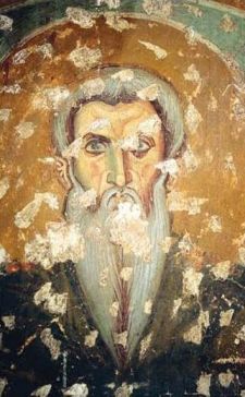 94. Неизвестный преподобный. Фреска арки диаконника собора Рождества Богородицы Антониева монастыря в Новгороде. 1125 г.