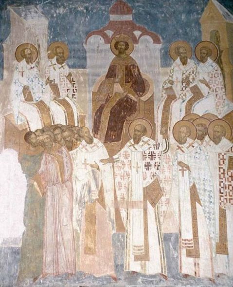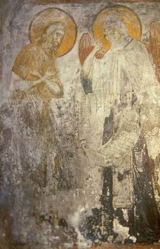 536. Петр благословляет Галлу милостивую. Фреска церкви Успения в Мелетове.1465 г.