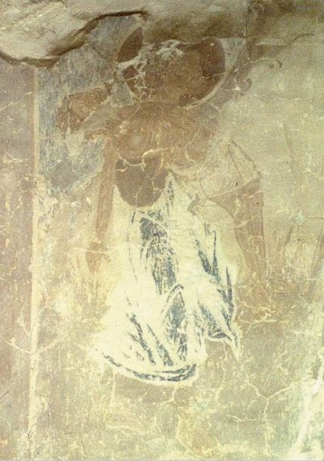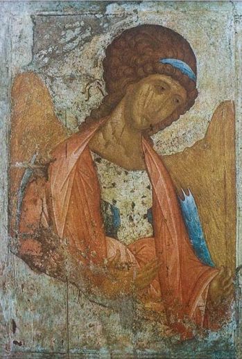 412. Андрей Рублев. Ангел из «Страшного Суда». Фреска Успенского собора во Владимире. 1408 г.