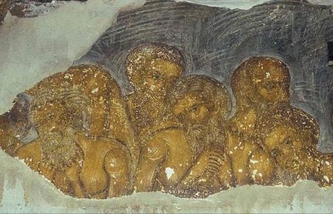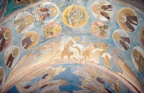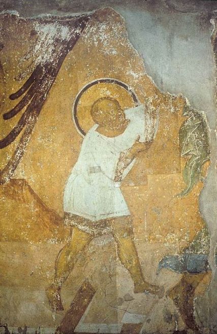 537. Христос несет благоразумного разбойника в Рай. Фреска церкви Успения в Мелетове. 1465 г.