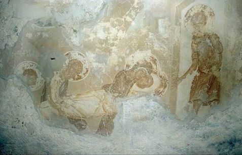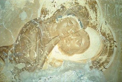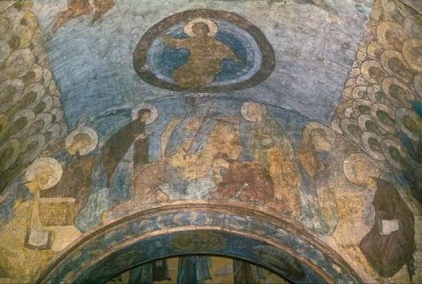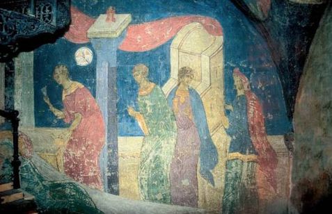543. Положение во гроб. Фрагмент. Фреска церкви Успения в Мелетове. 1465 г.