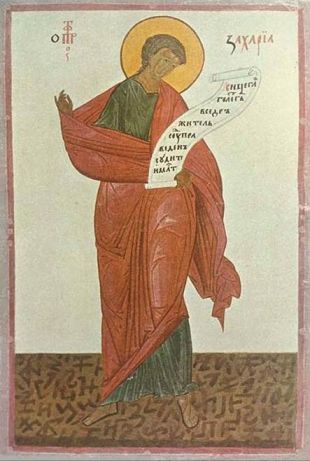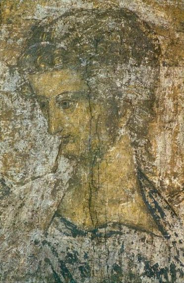 391. Пророк Захария Серповидец. Фреска церкви Архангела Михаила в Сковородском монастыре, близ Новгорода. Около 1400 г.