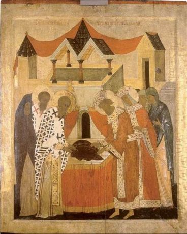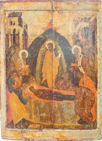 Вспоминается рассказ Троицкой летописи под 1399 г. о последних днях тверского князя Михаила Александровича. Незадолго до кончины ему принесли дар из Константинополя – икону «Страшный Суд», которая была встречена с крестным ходом, после чего князь целовал икону, прощался со всеми монахами и мирянами, присутствовавшими на устроенном им торжественном обеде, завещал своим детям и придворным придерживаться добродетели, а затем отправился в городской собор, где в стенописи тоже был изображен Страшный Суд, и там попросил похоронить себя в склепе под изображением Авраама, Исаака и Иакова, пребывающих в Раю.