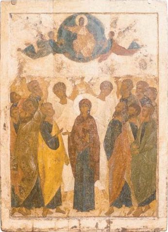 421. Вознесение. Около 1410–1411 гг. из праздничного ряда иконостаса Успенского собора во Владимире. ГТГ