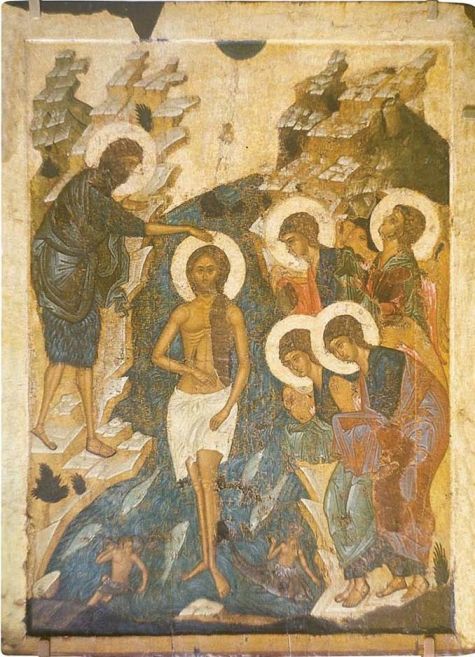 422. Крещение. Около 1410–1411 гг. Из праздничного ряда иконостаса Успенского собора во Владимире. ГРМ