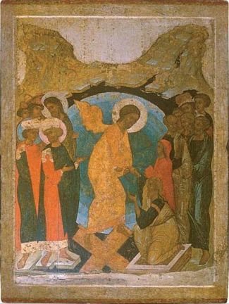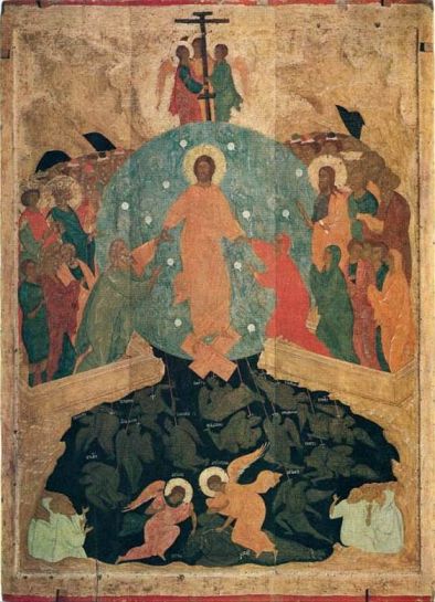 423. Сошествие во ад. Около 1410–1411 гг. Из праздничного ряда иконостаса Успенского собора во Владимире. ГТГ