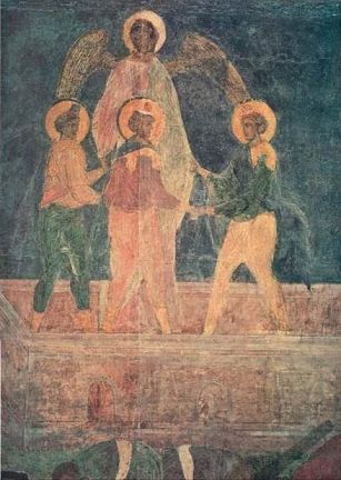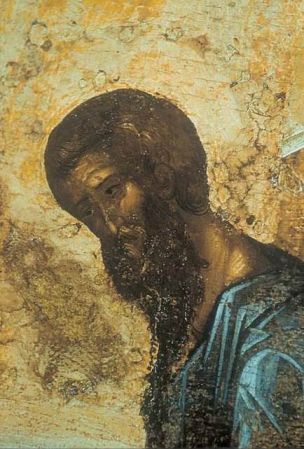 404. Мастер Даниил (?). Ангел ведет младенца Иоанна Предтечу в пустыню. Фреска жертвенника Успенского собора во Владимире. 1408 г. Иоанн