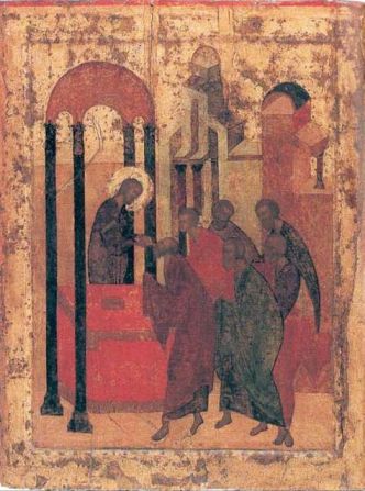 420. Сретение. Около 1410–1411 гг. Из праздничного ряда Успенского собора во Владимире. ГРМ