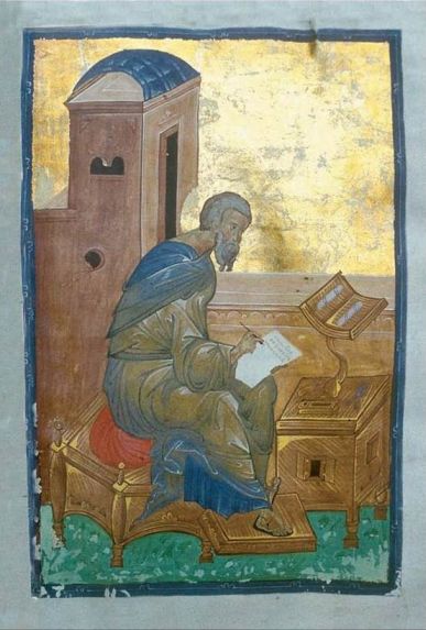 524. Иоанн Богослов. Фрагмент. Миниатюра Шереметьевского Евангелия. Около 1430-х гг. ГИМ, Син. 364