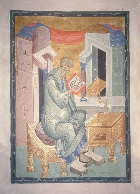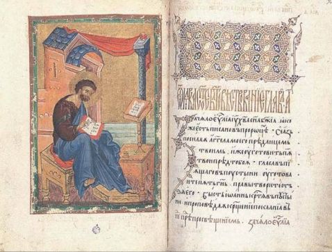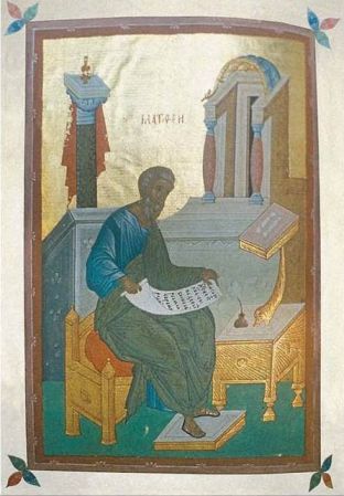 527. Евангелист Матфей. Миниатюра Островского Евангелия. 1468 г. Московский областной краеведческий музей, Истра