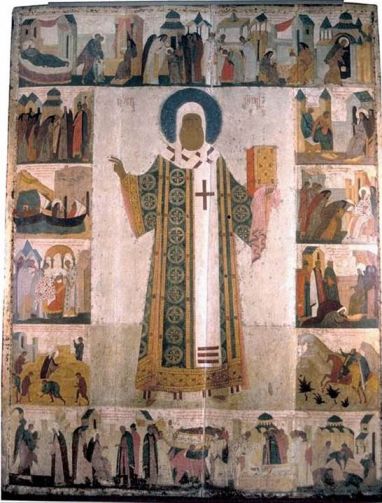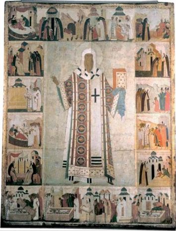 Особое место среди произведений рубежа столетий занимает двусторонняя икона в Череповецком музее, где на лицевой стороне находится относительно поздний образ Богоматери «Знамение», а на обороте сохранилась первоначальная живопись рубежа XIV–XV вв. с изображением св. Николая. В этой иконе существенны не столько новая пластика и ритм, сколько характеристика лика, в котором, наряду с духовной силой и проницательностью, ощущается исключительная сдержанность, скромность, уравновешенность. Лик св. Николая несколько напоминает икону того же времени с изображениями св. Климента и св. Наума Охридских (Охрид, Галерея икон). Эти произведения относятся к категории духовных портретов святителей и преподобных, которая была издавна известна в искусстве византийского мира, включая такие выдающиеся памятники как иконы «Св. Григорий Богослов» XII в. (Гос. Эрмитаж), «Св. Николай» из Новодевичьего монастыря, начала XIII в. (ГТГ), «Преподобный Иоанн Рильский» XIV в. (Рильский монастырь в Болгарии). Икона из Череповца является, в свою очередь, предшественницей замечательных изображений русских святителей и преподобных, создававшихся на рубеже XV–XVI вв. Дионисием и мастерами его круга.