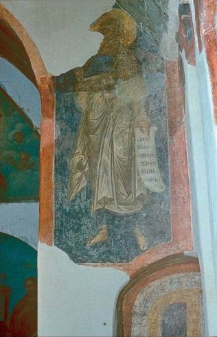 390. Пророк Авдий. Фреска церкви Архангела Михаила в Сковородском монастыре, близ Новгорода. Около 1400 г.