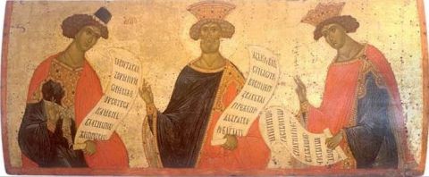 496. Пророки Даниил, Давид, Соломон. Средник пророческого ряда иконостаса Успенского собора Кирилло-Белозерского монастыря. Около 1497 г. ГТГ