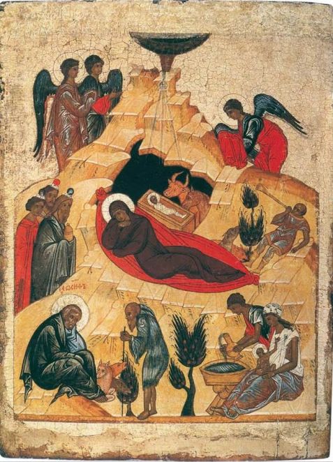 519. Рождество христово. Конец XV в. (около 1475 г. ?). Из праздничного ряда иконостаса Никольской церкви в Гостинополье. Собрание банка «Интеза». Галерея «Палаццо Монтанари» в Виченце, Италия