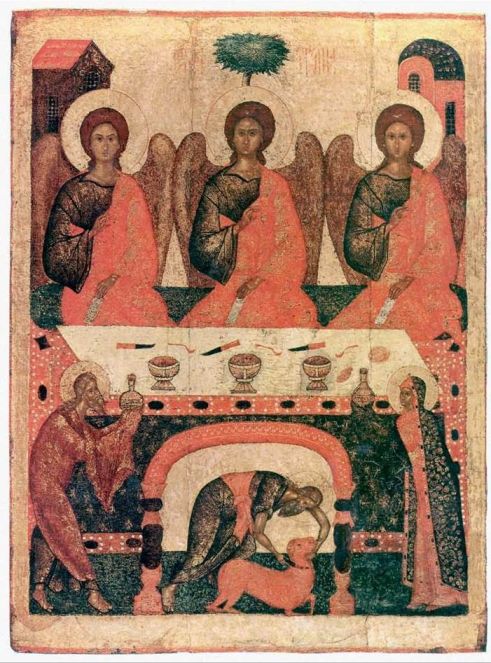 Не будет преувеличением сказать, что «Троица» стала самой знаменитой русской иконой, как в силу ее исключительного художественного качества, так и благодаря особому значению сюжета в православии. Никогда еще в искусстве византийского круга не создавалось столь точного изобразительного эквивалента важнейшему догмату Православной Церкви – о Св. Троице, неслиянной и нераздельной, ипостаси которой единосущны и равносущны. Фигуры ангелов, персонифицирующих ипостаси Св. Троицы, вписаны в круговую композицию, благодаря чему выявляется их общность.