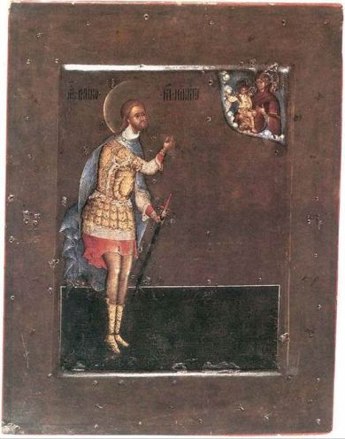 649. Кирилл Уланов. Св. Димитрий Солунский. Живопись 1701 г. на доске XII в., принесенной в 1197 г. во Владимир из Салоник Успенский собор Московского Кремля