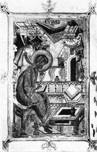 Так называемое Ананьевское Евангелие конца XVI – начала XVII в. (РГБ) представляет собою старопечатную книгу, в которой орнамент раскрашен от руки, а между соответствующими листами вставлены тончайшие миниатюры, где изысканно хрупкие фигуры евангелистов окружены узорным кружевом построек и скал (илл. 639).