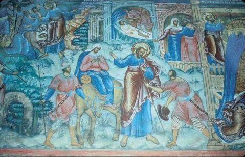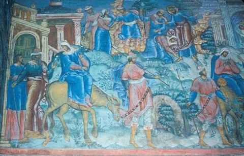 654. Сцены из цикла чудес пророка Елисея. Роспись церкви Ильи Пророка в Ярославле. 1680–1681 гг. Отъезд сонамитянки на поиски пророка Елисея