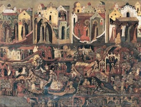Непосредственность и поэтичность русских фресок придают им нечто родственное русским народным сказкам, в основе которых лежала именно культура XVII в., с ее пестротой и экзотикой мотивов, с ее смешением подробного библейского повествования и переводными текстами полуфольклорных западноевропейских повестей (например, Повесть о Бове королевиче или обработанная Пушкиным «Сказка о царе Салтане»).