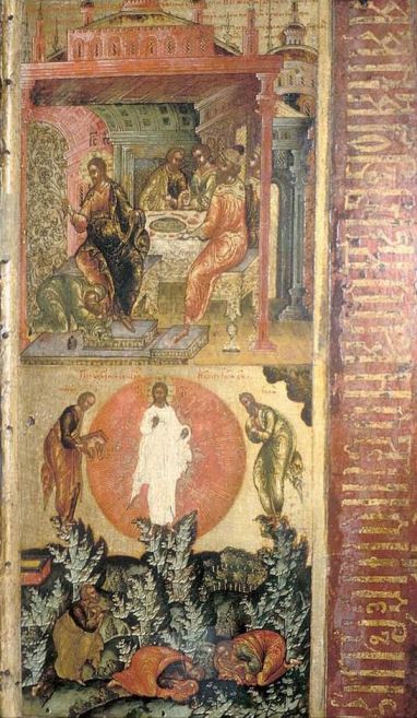 661. Семен Спиридонов. Клейма иконы «Спас Вседержитель на престоле, с евангельскими сценами»: Пир в доме Симона Фарисея; Преображение. 1680-е гг. ГРМ