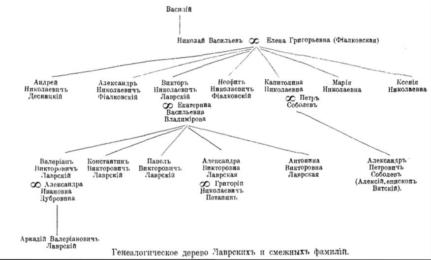 Аркадий Валерианович Лаврский – сын о. Валериана Викторовича и Александры Ивановны, родился в 1863 г. Образование получил в Казанском Университете по естественному факультету. Принимал участие в естественноисторическом исследовании Казанской губернии. Состоит профессором минералогии в Екатеринославском Высшем Горном училище.