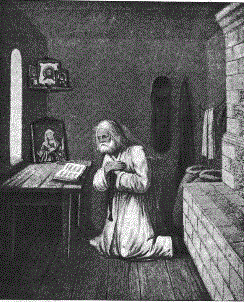 Все мы, верные сыны Церкви и отчизны, ныне, в дни земного прославления великого Саровского чудотворца обратимся же с пламенной молитвою к нему об избавлении Руси святой от зловредной смуты, которая не оставила в покое даже и такое святое дело, как Саровское торжество. Впрочем, это и неудивительно. Как известно, при жизни св. Серафима враг рода человеческого много раз делал попытку помешать возрастающим подвигам его благочестия: то он ужасает его страшными видениями, поднимает на воздух и подвергает его ушибам. Однако эти испытания не преодолевают несокрушимо святой воли: подвижник после дьявольских козней поднимается на новый подвиг – столпничество. Он выбрал недалеко от своей кельи большой гранитный камень и на нём предается молитве в течение 1.000 дней и ночей. Вносит и в келью свою меньший камень, чтобы не было мягче на молитве его коленям.