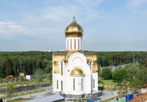 Храм великомученика Георгия Победоносца на Поклонной горе (Москва). Храм великомученика Георгия Победоносца расположен на территории огромного мемориального комплекса Парк Победы на Поклонной горе, посвященного Великой Отечественной Войне 1941-1945 г. г. Закладка камня в основание будущего храма была совершена ныне почившим патриархом Алексием II 9 мая 1994 г. Строительство велось на средства города с 1994 по 1995 год.