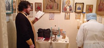 - В отделении реанимации по просьбе родителей священник крестит младенцев.