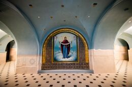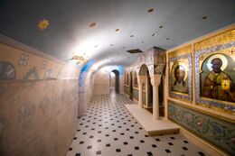 Пещерный храм собора Казанской иконы Божией Матери (Казань), восстановленный на основе археологических исследований, представляет собой подземное сооружение, изначально построенное в начале XX века по проекту Алексея Щусева, с сохранением исторического фундамента и сводов собора 1595 года, оформленное в классическом стиле с голубыми сводами и золотыми звездами, а также музейной экспозицией, рассказывающей о его истории и значении для Казани.