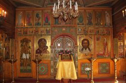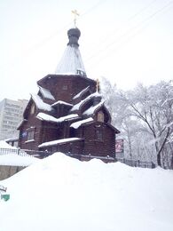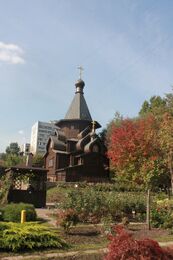 Приходской храм-часовня святителя Алексия, митрополита Московского в Раеве (Москва). Деревянный однопрестольный храм Сергиевского благочиния г. Москва.