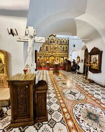 - Ковчеги с частицами мощей преподобномученицы Евдокии Илиопольской и преподобного Александра Свирского