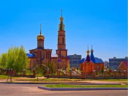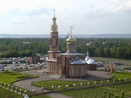 - Автомобилем: из центра Нижнекамска двигаться в сторону жилого района по улице Мурадьяна; храм находится по адресу ул. Мурадьяна, д. 5.