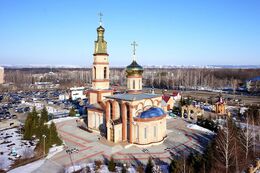 Храм в честь Воскресения Христова в городе Нижнекамск представляет собой величественный каменный однопрестольный собор, освящённый в 2000 году и ставший духовным центром молодого промышленного города. Здание отличается торжественной композицией: высокий центральный объём под куполом, примыкающие крестильная церковь Казанской иконы Божией Матери, храм святителя Николая Чудотворца и водосвятная часовня, что создаёт гармоничный храмовый комплекс, украшающий городской пейзаж и напоминающий о победе Христа над смертью.