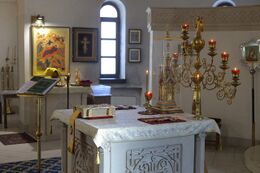 - Крестильный храм равноапостольного великого князя Владимира. В 2013 г. на месте строительства был возведен временный (ныне — крестильный) храм равноапостольного великого князя Владимира. Храм имеет одноименный престол.