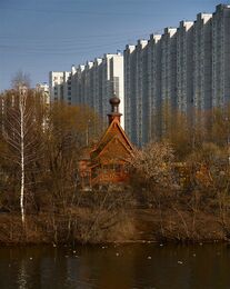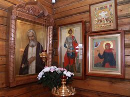Храм преподобного Серафима Саровского в Филевской пойме (Москва) Небольшой деревянный храм, построенный в 2004 году для проведения богослужений на время строительства основного храма — Всех святых, заложенного рядом в 2007 году.